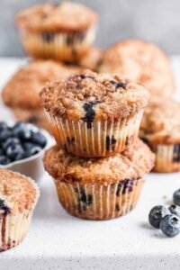 Ce post contient des liens d'affiliation. Des muffins aux myrtilles faits maison avec un nappage crumble qui sont prêts en seulement 30 minutes ! Ils sont parfaits pour le meal
