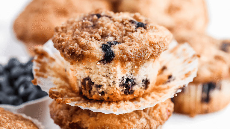 Cette recette de Muffins aux Myrtilles donne des muffins moelleux et humides avec un crumble de qualité boulanger. Profitez-en à tout moment ou congelez-les pour un petit-déjeuner rapide à emporter ou une collation.