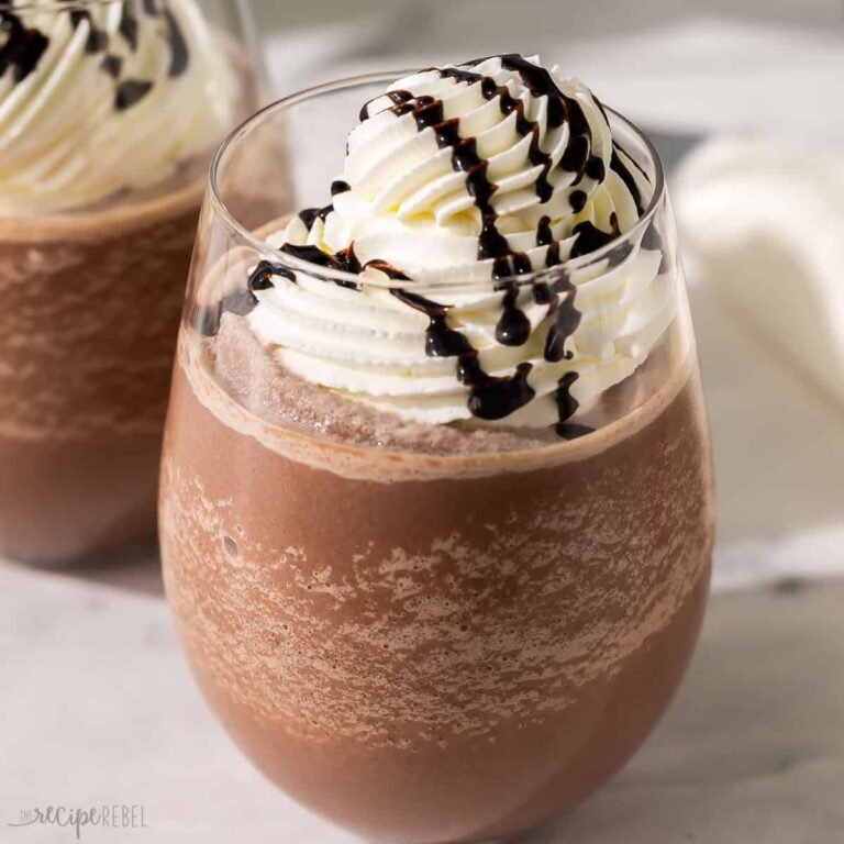 Cette recette est la manière la plus simple de savourer le chocolat chaud sous forme glacée ! Pour la liste complète des instructions de la recette, assurez-vous de vérifier la carte de recette ci-dessous.