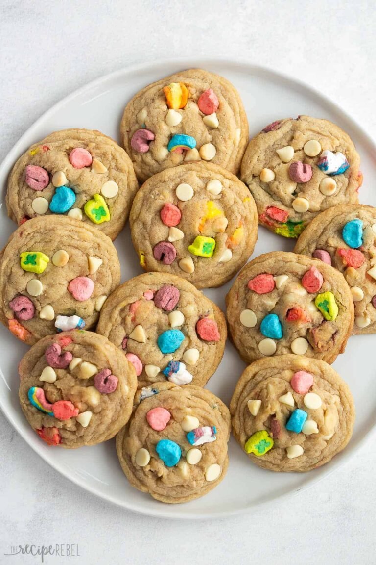 Ces Cookies aux Lucky Charms et chocolat blanc sont parfaitement moelleux et préparés avec des céréales Lucky Charms et des guimauves. Idéaux pour la Saint-Patrick ! Comprend une vidéo de recette étape par étape.