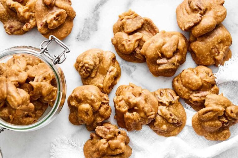 Après avoir eu beaucoup de noix de pécan restantes après avoir préparé des noix de pécan caramélisées, j’ai commencé à me demander si je pouvais faire une version « sans sucre raffiné » des pralinés aux noix de pécan. Ce sont l’un de mes bonbons préférés du Sud, et chaque fois que je visite la Nouvelle-Orléans, je craque pour un ou deux. Tout ce qui est crémeux et aux noix est mon langage d’amour en matière de desserts. Eh bien, bonne nouvelle, il est tout à fait possible de faire des pralinés aux noix de pécan avec du sirop d’érable ! Je suis tellement excité du résultat de ces pralinés. Vous adorerez également que cette recette est :