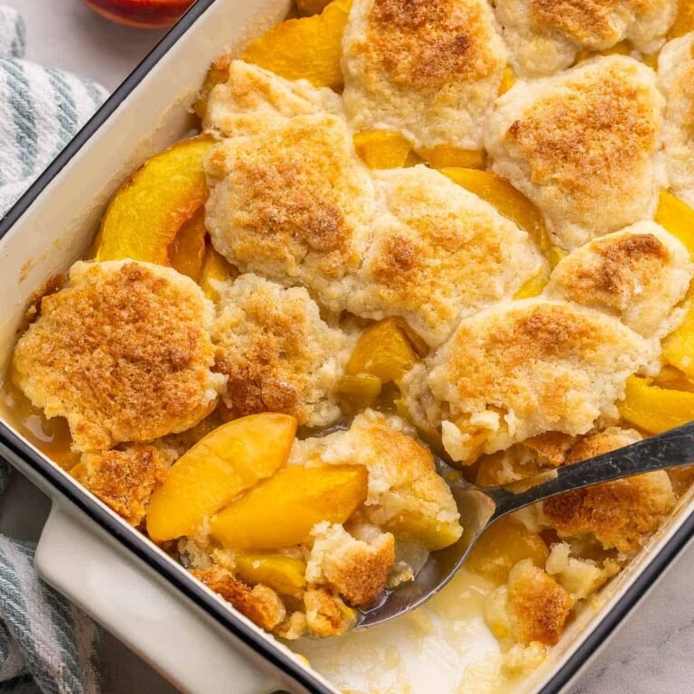 Un cobbler aux pêches fait maison est l’un de mes desserts d’été préférés — et c’est plus facile à préparer que vous ne le pensez !