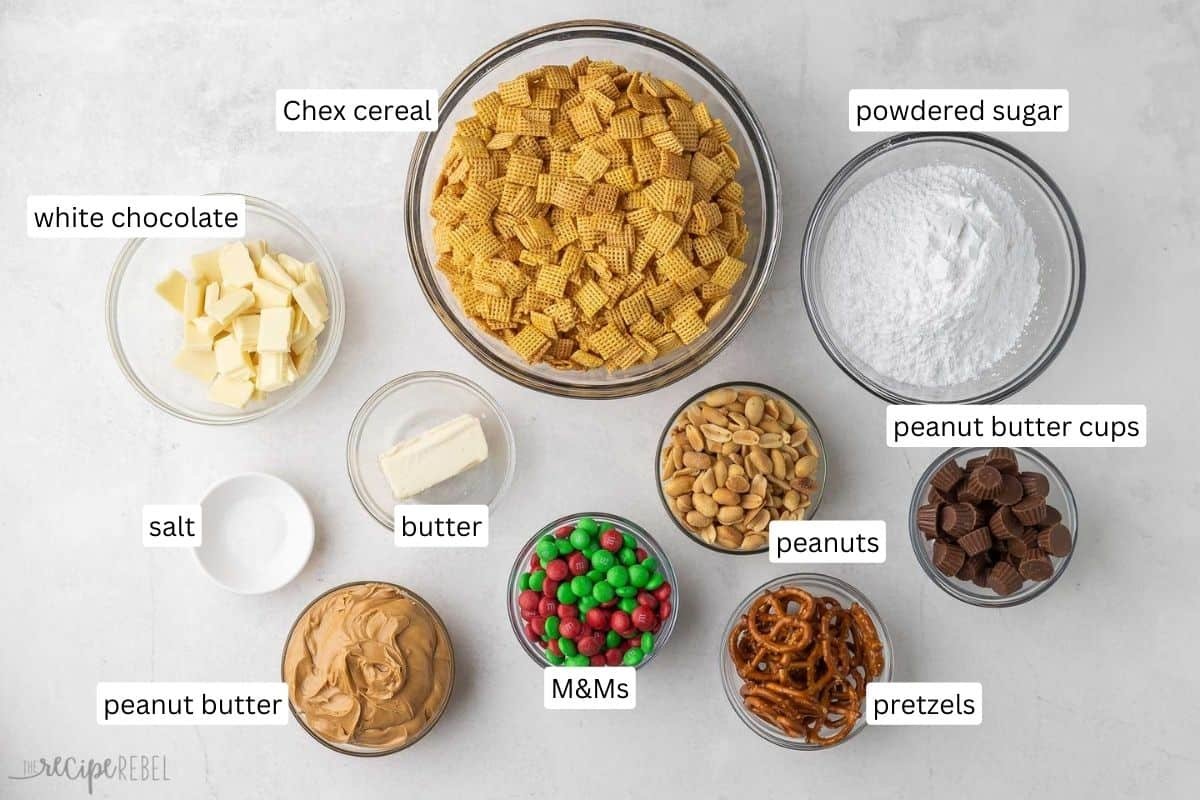 Le Reindeer Chow est une recette incontournable pour Noël, riche en saveurs sucrées, salées et croquantes ! Vous n’avez besoin que de quelques ingrédients simples comme du beurre de cacahuète, des céréales Chex, du chocolat blanc et des bonbons pour réaliser cette recette festive.